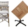 Ensemble bistrot composé de 2 chaises rotin & 1 table pivotante plateau bois d’iroko 60cm ou 60x70cm- Réf : Pack-ROKO-TORINO-2
