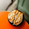 Plateau de table bistrot orange cerclé laiton D60CM- Réf : AMSTERDAM-PLR60
