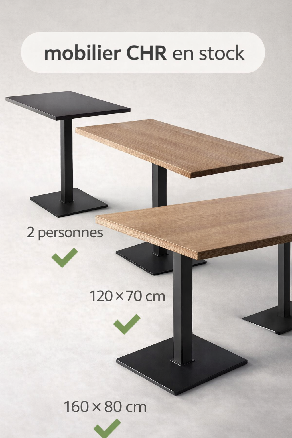 En revanche, évitez les assemblages incohérents. Par exemple, un plateau grand sur un piètement trop léger. Résultat : la table bouge. Et les clients le ressentent immédiatement.