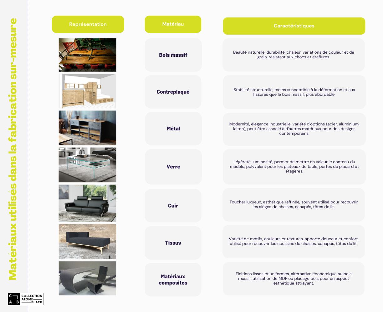 Le mobilier professionnel sur commande repose sur des modèles définis à l’avance. Dans ce cadre, les dimensions, matériaux et finitions sont encadrés, ce qui garantit une production fiable et reproductible.