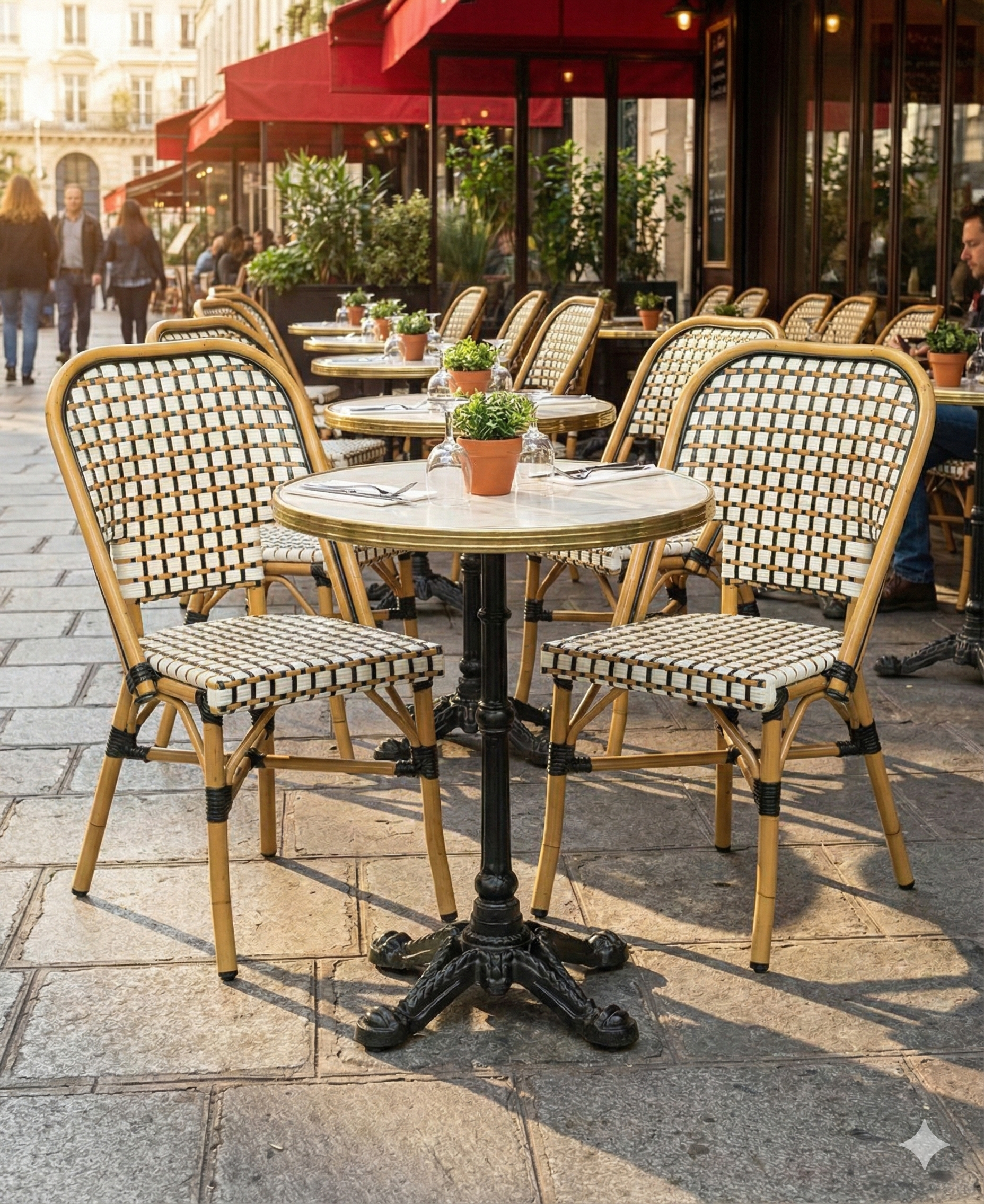 Un ensemble bistrot rotin 70 cm prêt à installer en terrasse CHR
