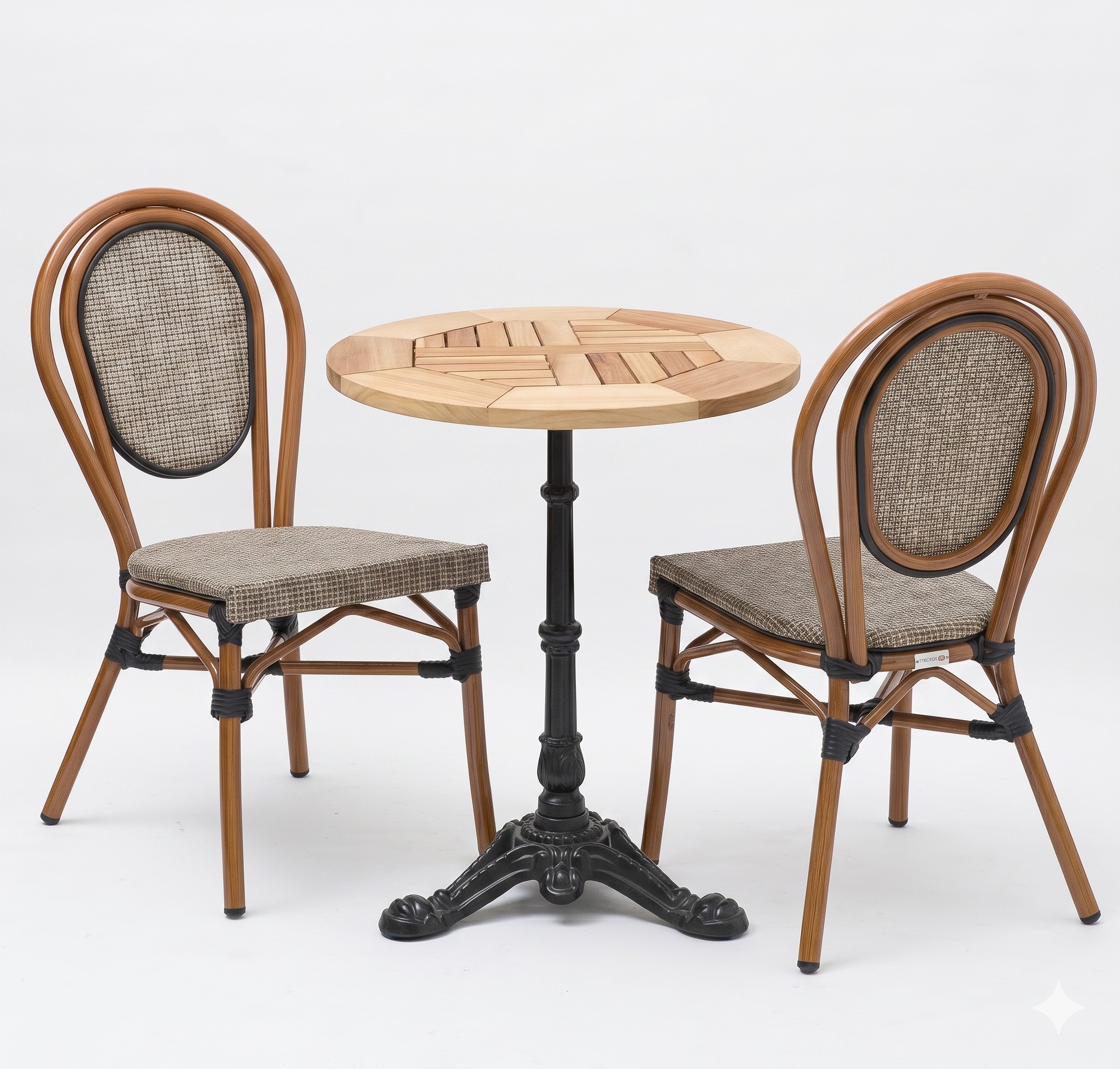 Cet ensemble bistrot terrasse professionnel est conçu pour les établissements CHR qui recherchent une solution fiable, esthétique et durable. En effet, il comprend une table complète avec plateau en bois iroko et pied fonte Paris 3, ainsi que 2 chaises Riviera en aluminium imitation bambou.