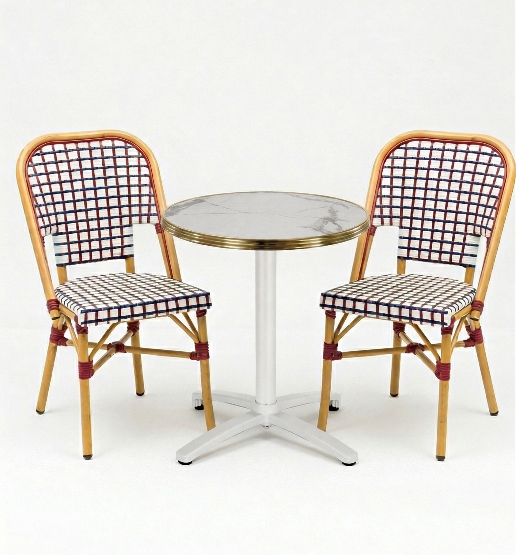 Chaises bistrot rotin aluminium tricolore – style français iconique