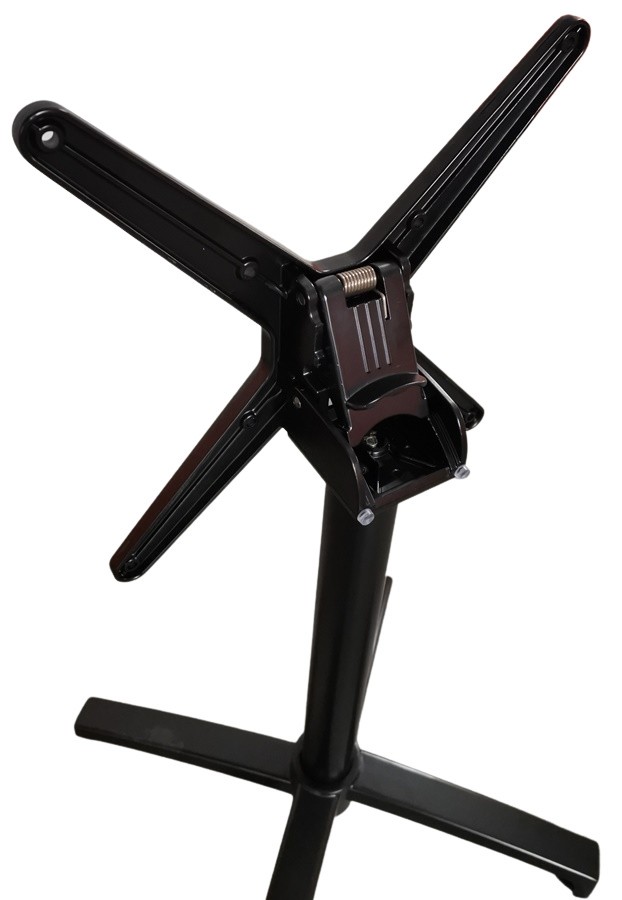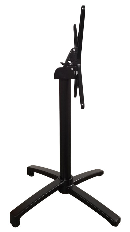 De plus, sa base large de 680 mm garantit une excellente stabilité, même en zone à fort passage. Ainsi, la structure à 4 branches se verrouille solidement en position ouverte afin de sécuriser la table pendant le service. En effet, la stabilité reste un critère essentiel pour les établissements recevant du public.