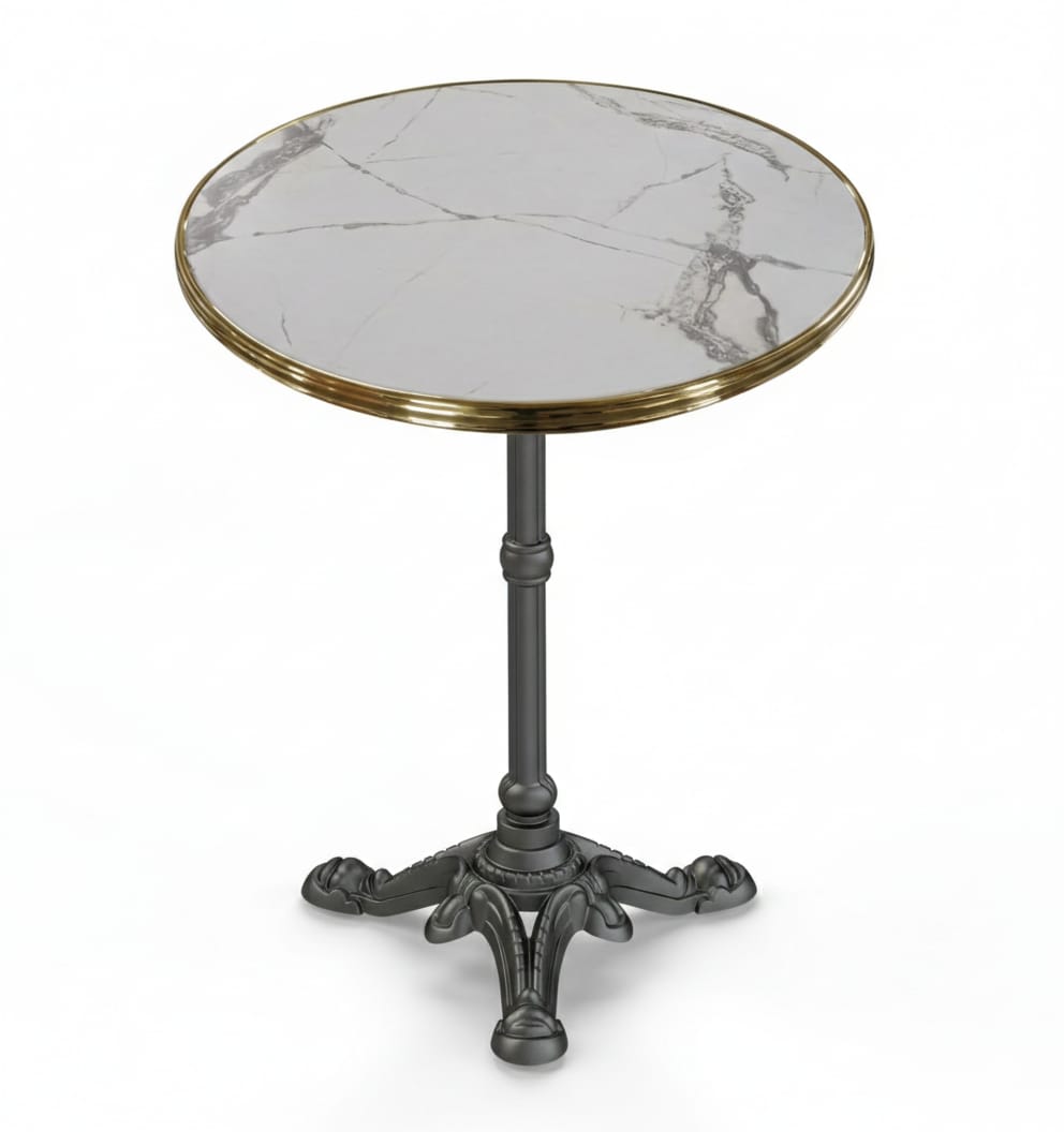 Piètement Paris 3 en fonte d’acier pour table bistrot Calacatta